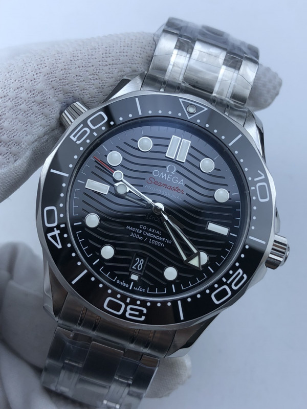 (준비완료/특급배송/)NO.1034/VS공장 오메가 씨마스터 다이버 300 스틸 블랙다이얼 러버밴드